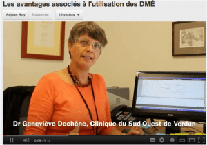 Quels sont les avantages à adopter un DMÉ? Le docteur Geneviève Dechêne, de la Clinique du Sud-Ouest de Verdun, fait le point sur cette question dans cette courte vidéo. Selon elle, avec un DMÉ, il y a plus d’efficacité, moins de paperasse à gérer et plus de plaisir à travailler…